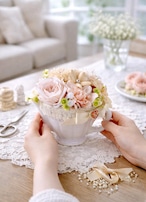 ・白い陶器とレースのハンドメイドデザイン