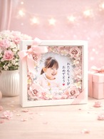優雅にデザインされた**お祝いフォトフラワーフレーム**は、特別な日の思い出を飾るために生まれました。木枠に両面ガラスが施されたシンプルかつ上品なこのフレームは、お誕生日や記念日のギフトに最適です。